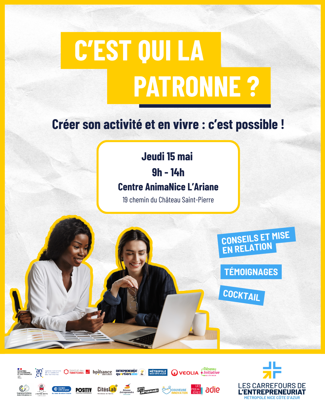 Initiative Nice Côte d’Azur organise dans le cadre du Carrefour de l’entrepreneuriat Métropole Nice Côte d’Azur l’évènement « C’est qui la Patronne ? ».